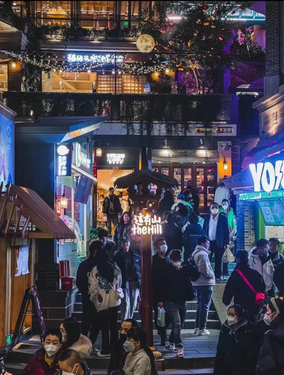 顺着山路蜿蜒而上是各种小店,接着会遇到第一个山门,过了山门仿佛进了古代闹市,各种好吃的小吃摊和店铺鳞次栉比,过上山的山门还有各种创意店铺,有猫咖、文创店铺等。