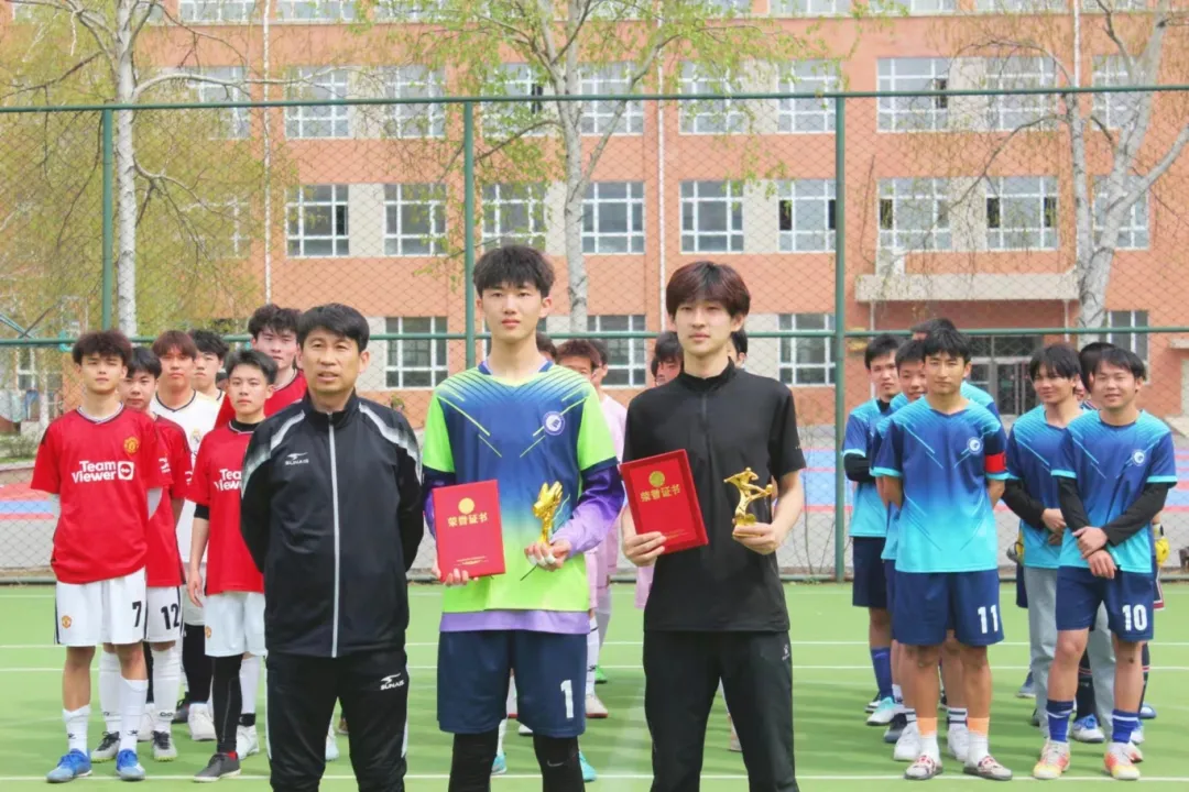 (最佳射手 建设工程学院郭慧举 最佳守门员 电气与电子工程学院杜博宇)