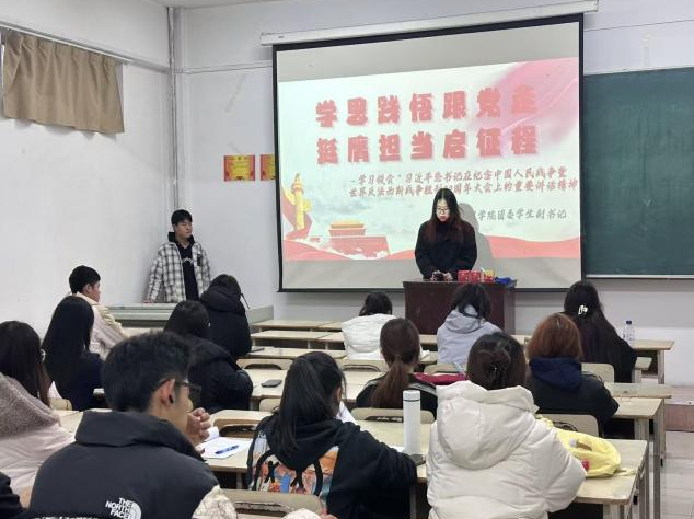10月29日-10月31日,各基层学院团委积极组织开展了“团委书记讲团课”活动,带领学员深入学习习近平总书记在纪念中国人民抗日战争暨世界反法西斯战争胜利80周年大会上的重要讲话精神。