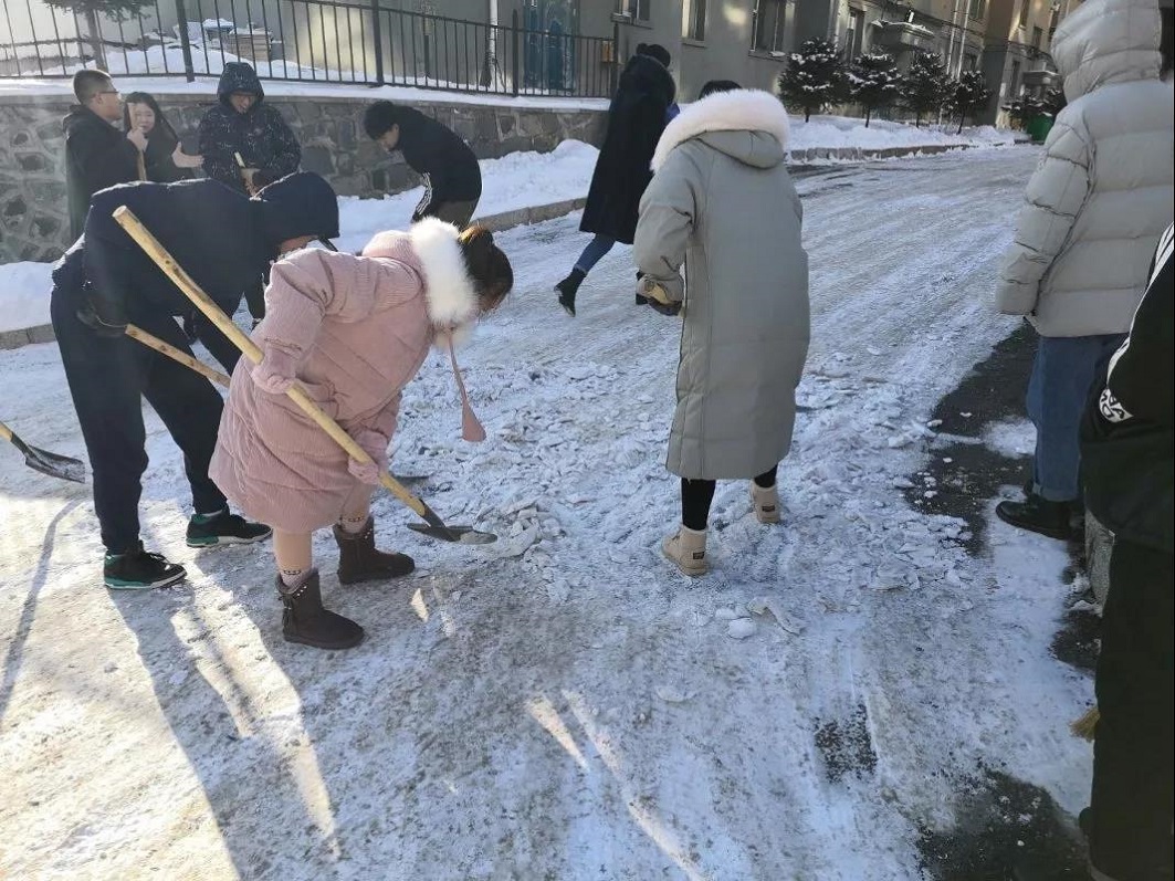 随着冷空气的到来,东北多数地区普降大雪,厚厚的白雪覆盖了街道,给行人及交通带来了极大的不方便,长春工业大学人文信息学院金融系于2019年11月20日下午组织进行了潭南社区扫雪活动。
